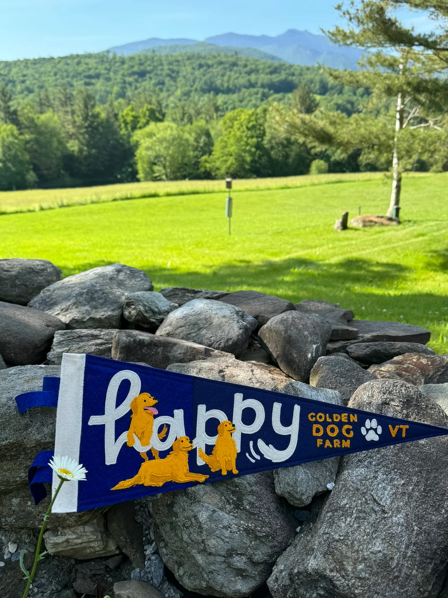 A "Happy of Goldens" has never "felt" so good! Beautiful handcrafted felt pennants that capture the happiness of Golden Retrievers and the essence of the Golden Retriever Experience. Made exclusively for Golden Dog Farm by Jessy Robertson and the artisans at Yoho & Co. Order yours today!!!! Limited quantities available.