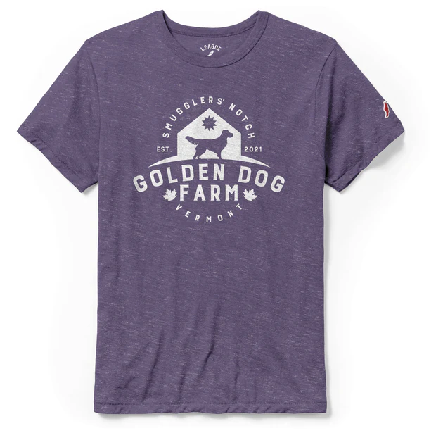 If you've been looking for a way to be a walking billboard for Golden Dog Farm, consider getting yourself one of these incredibly soft tees with a larger than life GDF logo on the front. Put a First Edition Golden Dog League Legacy t-shirt in your cart, and then in no time you can be posting lots of social media photos with you wearing this iconic art form and amplify the impact of your support for family-owned farms. 50% polyester, 37% cotton and 13% rayon. Unisex sizes S-2XL.