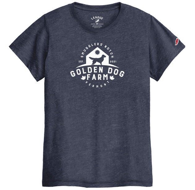 Like the men's tee, but for women, with shorter sleeves and a tapered neckline. Same big logo, though! So for all you ladies who have been looking for an opportunity to put your love for Golden Dog Farm on display, this is one of the softest, most comfortable ways to get it done!